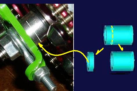 (13)リヤホイルの右用のカラー(一 番長いもの)は8ミリカットして使用してください。 カットした8ミリは左スプロケット側に付けてください。 rear right-side axle collar ; Please cut it at 8 mm, then cutted 8mm collar is used in left-side collar |
